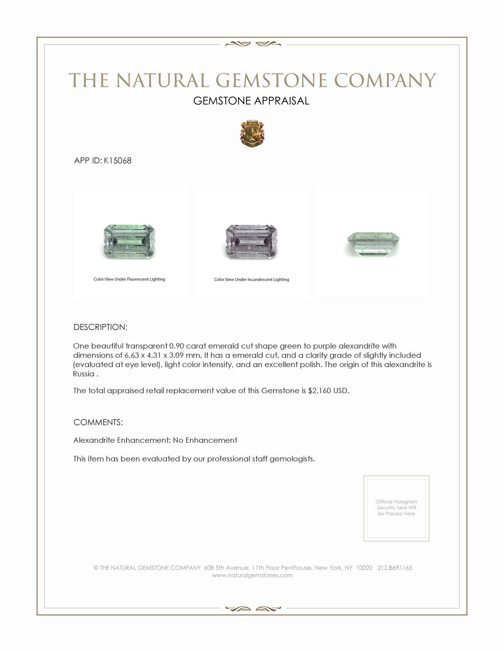 For collectors and jewelry enthusiasts alike, this gemstone from The Natural Gemstone Company fulfills the quest for something undeniably extraordinary. Its unique interplay of colors offers a dynamic aesthetic that can complement any collection or serve as a standout piece in a bespoke jewelry design. Whether this is the key to sealing a love story or an addition to a curated gem collection, this alexandrite represents a moment where your search finds its perfect conclusion. Allow this gemstone to tell your story, transforming elegance into an everlasting experience that only The Natural Gemstone Company can provide.