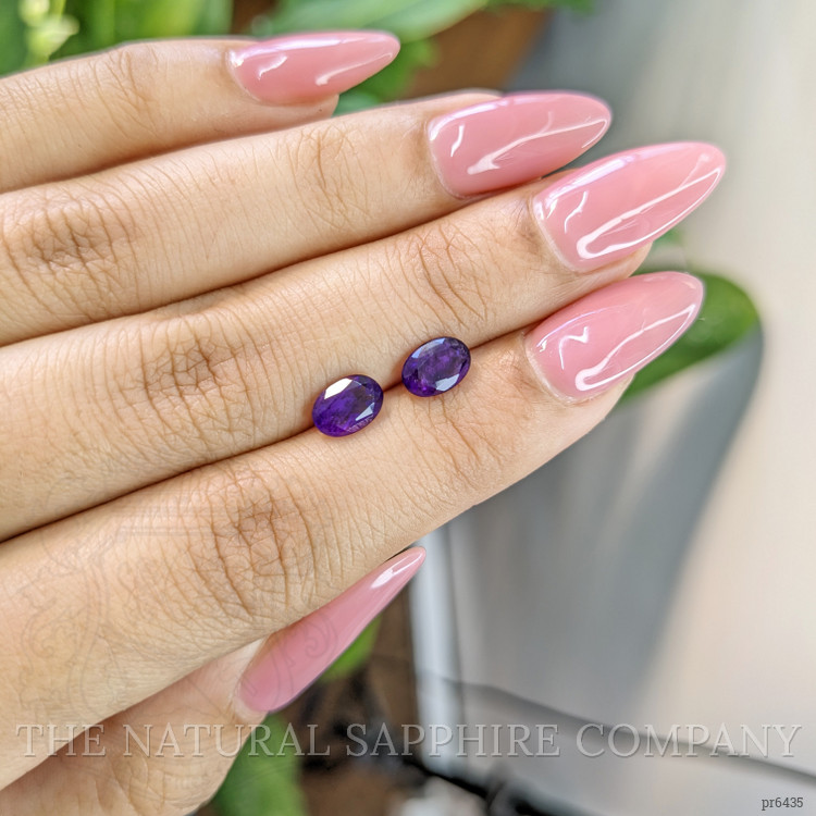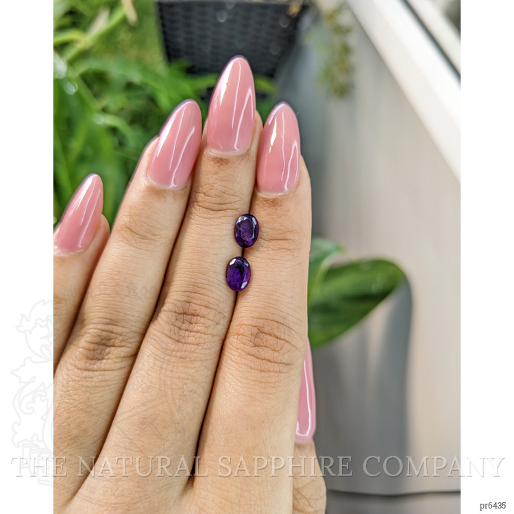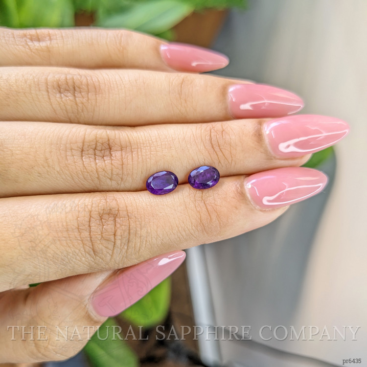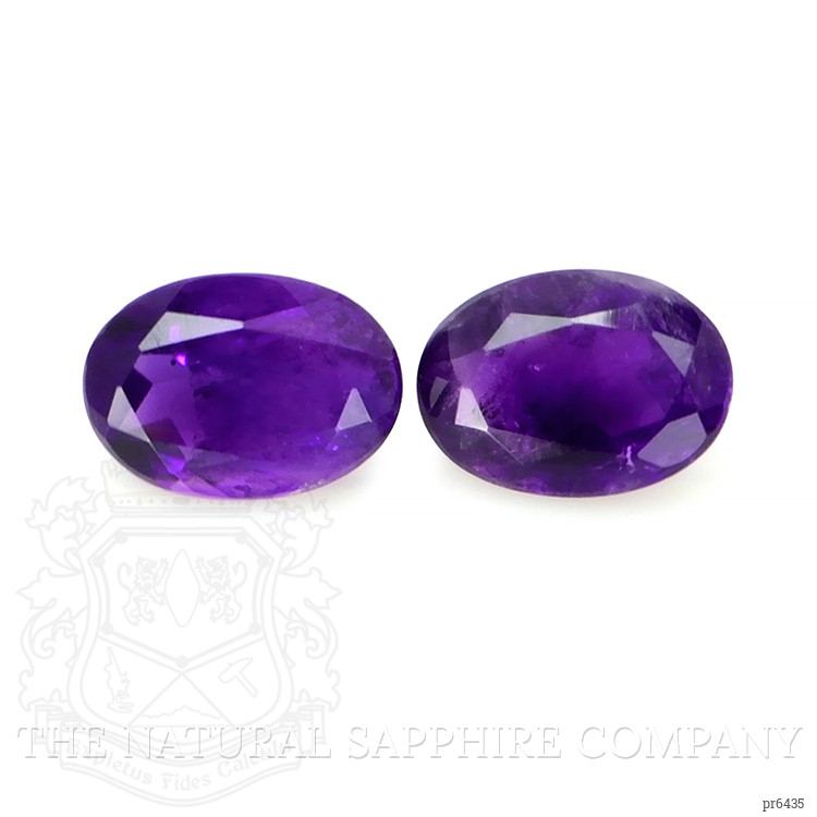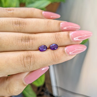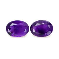 The beautiful, transparent pair of amethysts are 0.77 carats and 0.76 carats respectively. They are oval shape purple amethysts, with the dimensions of 7.09 x 5.07 x 3.59 mm and 7.06 x 5.07 x 3.60 mm and are mixed brilliant cut, have a clarity grade of very slightly included (evaluated at eye level), vivid color intensity, and an excellent polish. The origin of this pair of amethysts is Brazil.