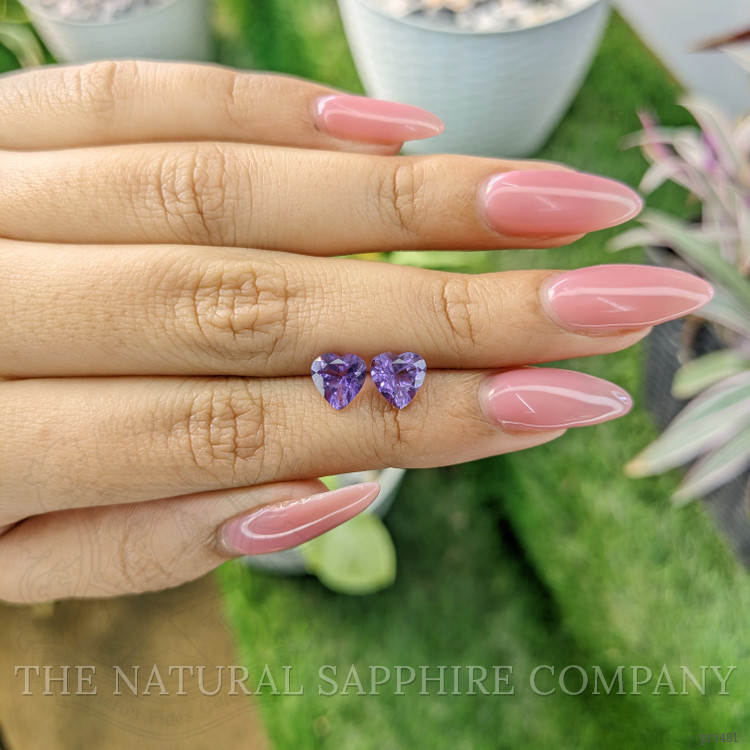 The heart-shaped amethysts from The Natural Gemstone Company, with carat weights of 1.02 and 1.05 respectively, are exemplary pieces illustrating the profound beauty and technical mastery inherent in fine gemstone jewelry. Originating from the gemstone-rich soils of Africa, these amethysts possess dimensions of 7.10 x 7.09 x 4.57 mm and 7.08 x 6.98 x 4.35 mm and are meticulously crafted into a mixed brilliant cut, ensuring optimal light reflection. This faceting style, beloved by connoisseurs, enhances the gemstone's inherent sparkle, allowing the intense purple hues to radiate with unmatched brilliance. With a clarity grade evaluated at eye level as very slightly included, these gems reveal minimal internal characteristics, offering a clear, vibrant canvas of color and life that captivates the observer.