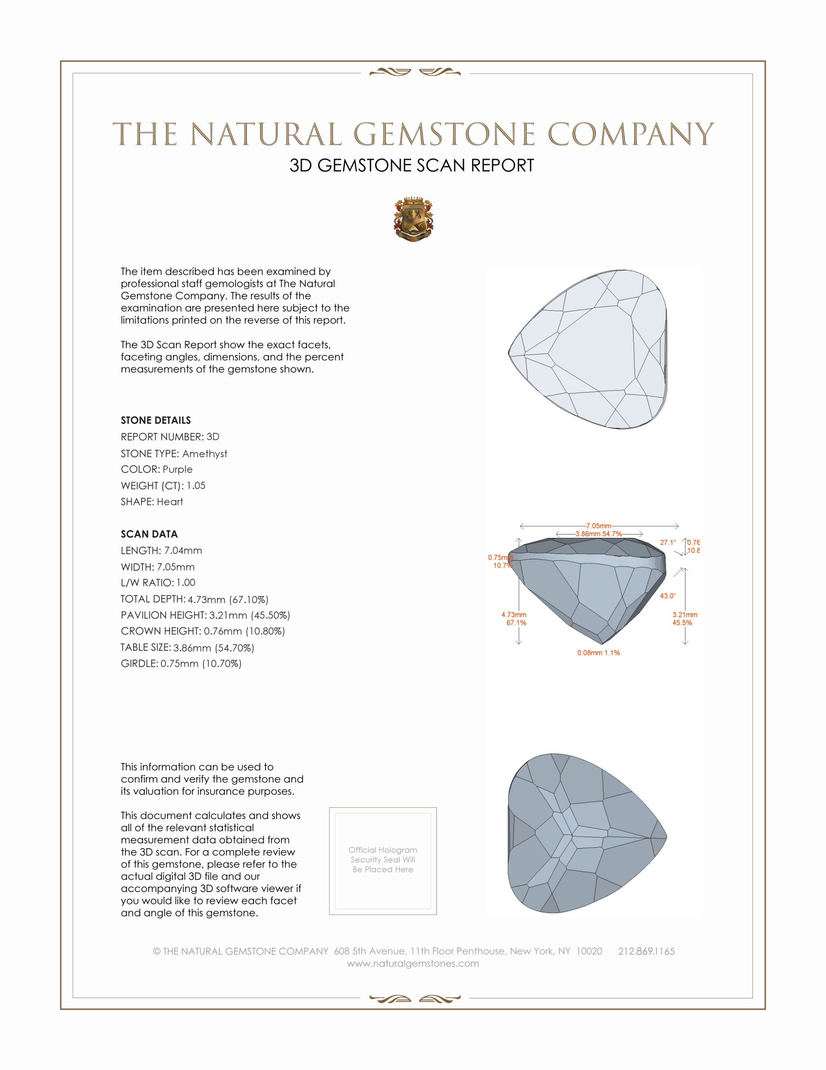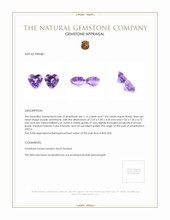 The Natural Gemstone Company proudly presents an exquisite pair of amethysts, notable for their exceptional clarity and brilliance. These heart-shaped gems weigh 1.15 and 1.05 carats respectively and have been meticulously cut to highlight their innate splendor. With dimensions of 7.07 x 7.09 x 4.50 mm and 7.04 x 7.05 x 4.73 mm, they feature a mixed brilliant cut that enhances their natural luster. The gems are graded as very slightly included, ensuring that any inclusions are not visible at eye level, thereby maintaining their appeal and elegance.