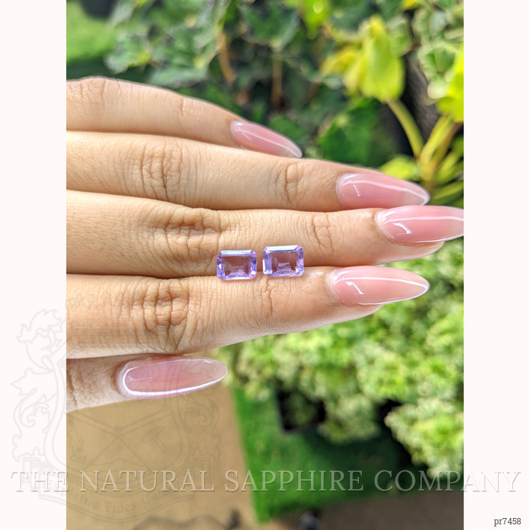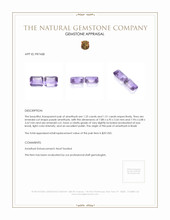 For educated buyers seeking timeless elements for their collection, these gemstones meet the highest quality standards. Their clarity, cut, and origin contribute to their exceptional value and desirability. The tailored emerald cut not only lends a sleek and versatile aesthetic but also optimizes light performance, ensuring that each facet reflects maximum brilliance. Light color intensity highlights the natural beauty and purity of the purple hues, unconcealed by heavy inclusions that often obscure lesser quality stones.