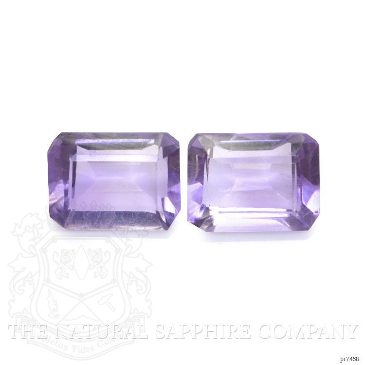 These exceptional amethysts are a truly captivating choice for the discerning gem enthusiast. Featuring a sophisticated emerald cut, these amethysts embody refined elegance of the highest order. The transparent pair showcase individual weights of 1.25 carats and 1.31 carats, making them an ideal combination for intricate jewelry designs that demand precision and grandeur. Meticulously crafted, each gem boasts precise dimensions of 7.88 x 6.95 x 3.45 mm and 7.94 x 6.08 x 3.62 mm respectively. Their symmetry and proportion reflect the commitment to excellence, with both stones rated with a clarity grade of very slightly included when evaluated at eye level. This high clarity offers a mesmerizing view into their depths, captured by light color intensity that brings out delicate and enchanting shades of purple.