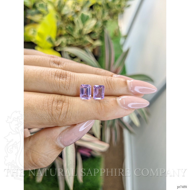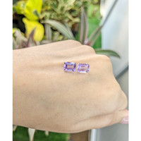 Indulge in the sublime splendor of these exquisite emerald-cut amethysts originating from the lush lands of Brazil. This stunning pair, boasting carats of 1.31 and 1.30 respectively, captivates the eye with its mesmerizing clarity and enchanting light purple hue. Carefully shaped and polished, each precious gem measures 7.88 x 5.92 x 3.88 mm and 7.96 x 5.98 x 3.98 mm, promising impeccable quality and elegance. The nearly flawless clarity of these amethysts, graded as very slightly included, ensures that their pure, natural beauty is accentuated. Meticulously crafted and displaying an excellent polish, these gemstones catch and reflect light in a way that is both breathtaking and majestic. Embrace the sustainable allure of these Brazilian treasures, formed deep within the earth in a process that exemplifies nature’s unparalleled artistry. This eco-conscious approach to procuring such divine gemstones ensures that your purchase is both luxurious and responsible. Elevate your jewelry collection today with these environmentally-friendly, transparent amethysts, and revel in a sophistication that is truly boundless.