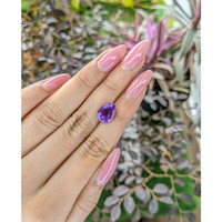 At The Natural Gemstone Company, we pride ourselves on curating pieces of unparalleled elegance, showcasing the extraordinary beauty captured within the depths of our earth's bounty. Our latest offering is an exquisite testament to our dedication to craftsmanship and artistic finesse. Presenting a breathtaking 2.92-carat pear-shaped purple amethyst, a stone that radiates sophistication while promising an alluring journey into the cosmos of luxury and grace. This exceptional gem, hailing from the vibrant heart of Brazil, is a masterpiece of nature, coaxed into brilliance by the touch of expert hands, thereby becoming a quintessential symbol of opulence.