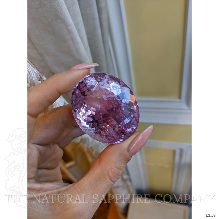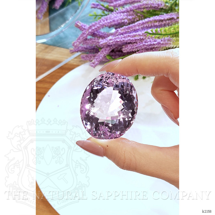 In the realm of luxury and opulence, where the discerning eye meets with an eternal joie de vivre, emerges a rare masterpiece from the exalted collections of The Natural Gemstone Company. Behold, the magnificent 217.91-carat pinkish purple amethyst, an extraordinary jewel hewn from the heart of Brazil, destined to transcend mere ornamentation and become an emblem of refined elegance and exclusive belonging. This exquisite amethyst, with its dimensions of 45.00 x 37.00 x 23.40 mm, captivates the beholder with its majestic oval shape and awe-inspiring size, crafting an impressively regal statement while retaining an aura of understated sophistication.
