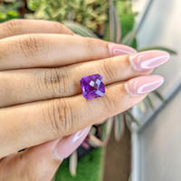 Discover the unparalleled allure of our rare 4.98 carat asscher-cut purple amethyst. With its striking octagon shape and impressive dimensions of 9.95 x 9.87 x 7.45 mm, this gemstone stands out not just in size but also in its vivid color intensity. The checkerboard cut enhances its natural brilliance, making it a captivating centerpiece for any collection. Sourced from the esteemed mines of Brazil, this amethyst boasts a slightly included clarity grade evaluated at eye level, providing a perfect balance of character and crystal clarity.