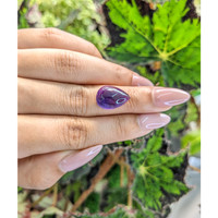 Once unearthed, this magnificent amethyst embarks on a new chapter, shaped skillfully into a luscious cabochon cut. The cabochon cut enhances the stone's translucence, allowing light to dance and swirl within its deep purple depths. The clarity grade, described as very slightly included, ensures that the amethyst maintains its serene transparency, interrupted only by minute inclusions that narrate its natural formation over millennia. The intense color intensity of the stone is this true allure, commanding attention and admiration, reminiscent of twilight skies or blossoming lavender fields under a setting sun. Our expert artisans devote meticulous attention to these gems at The Natural Gemstone Company, ensuring each is exquisitely polished to achieve a flawless finish, encapsulating the brilliance of craftsmanship and natural beauty.
