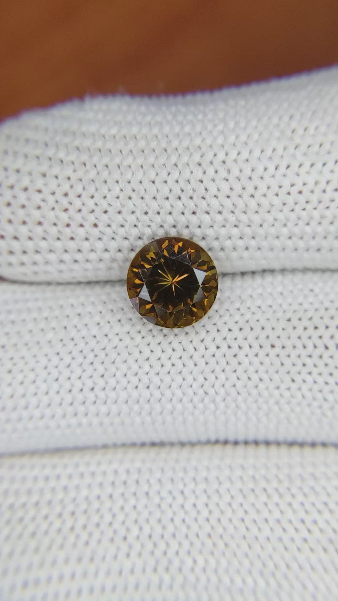 Introducing an exquisite gemstone from The Natural Gemstone Company, this 2.62 carat round shape greenish brown andradite garnet embodies a standard of premium quality that appeals to the educated buyer. With dimensions of 8.18 x 8.20 x 5.49 mm, this gemstone showcases a mixed brilliant cut that truly highlights the mesmerizing beauty of its form. The mastery of this cut enhances the gemstone's natural ability to refract light, resulting in a captivating display of brilliance and fire. Garnet, renowned for its durability and stunning array of colors, is a favorite among connoisseurs, and this particular stone stands out by virtue of its intensely vibrant greenish brown hue alongside an eye clean clarity grade. The clarity of a gemstone is a key factor in its valuation, and with an eye clean evaluation, this garnet assures that no inclusions are visible to the naked eye, ensuring an unblemished, pure visual experience.