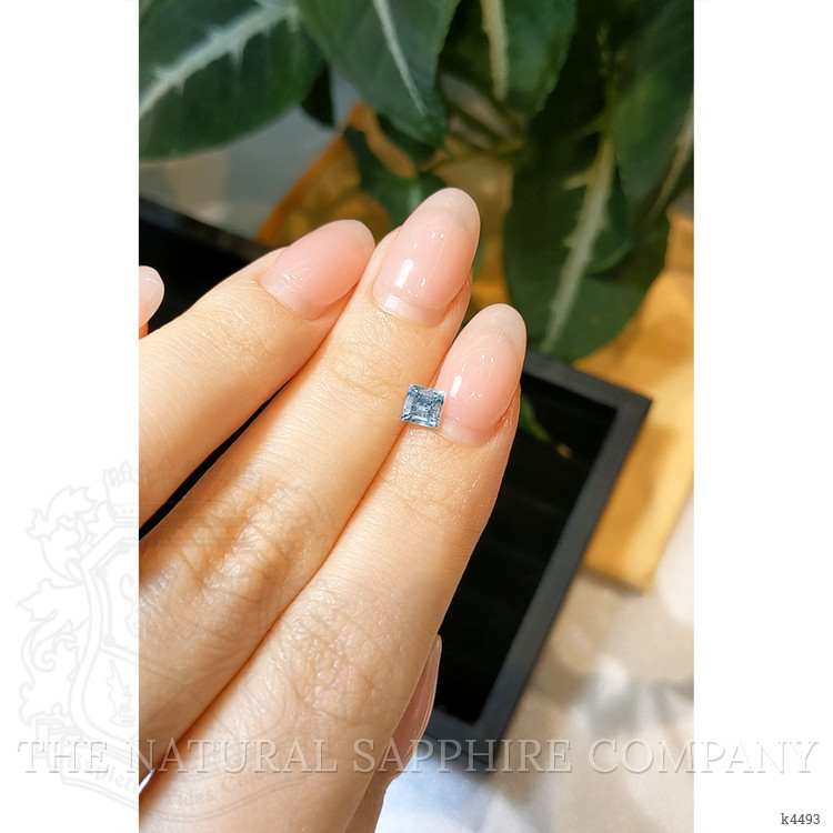 Exquisitely crafted by The Natural Gemstone Company, this 0.43 carat aquamarine is fashioned into a captivating princess shape, epitomizing elegance in every facet. With dimensions of 4.49 x 4.43 x 3.28 mm, its transparency captures a world that seems both ethereal and grounded. The slightly included clarity, perceptible only upon patient inspection, hints at the untouched beauty of its natural form and the passage of nature's hand through time. Yet, despite its slight inclusions, the aquamarine's polish remains impeccable, revealing a lustrous surface that displays the unique depth of its pale blue heart.