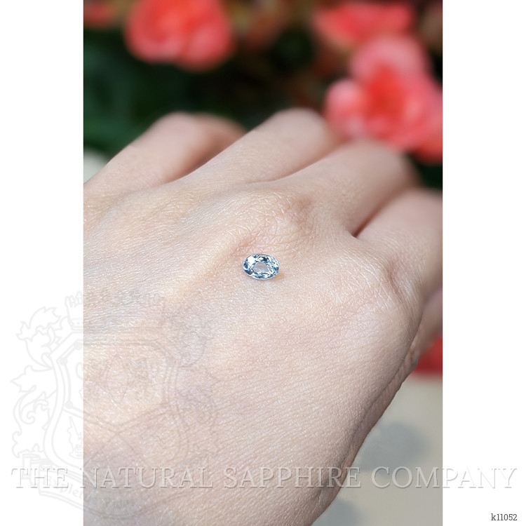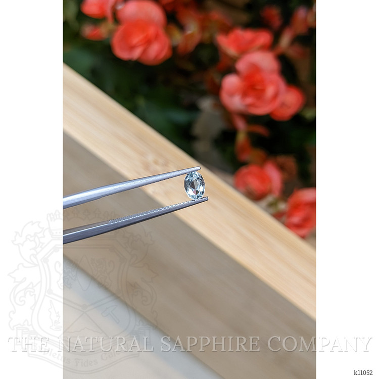 At first glance, the aquamarine's oval shape, measuring 5.86 x 4.14 x 3.03 mm, appears as a delicate droplet from an azure lake. Its surface, hewn with a mixed brilliant cut, captures and reflects light with a playful yet profound beauty. Upon closer inspection, the gemstone reveals its clarity, classified as very slightly included when viewed at eye level, allowing a glimpse into its mysterious interior where tiny natural characteristics narrate its birth and formation over countless years. The light color intensity of this gem does not scream for attention, but rather invites one to linger and to explore the calmness and peace it exudes, evoking the tranquil blues of the ocean at dawn.