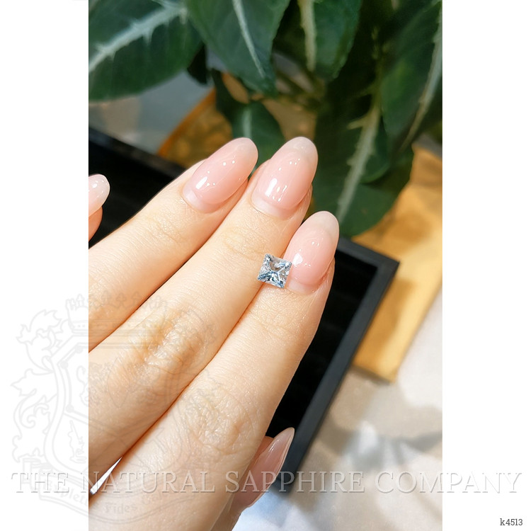Our beautiful transparent 0.71-carat princess shape blue aquamarine, with dimensions of 5.53 by 5.46 by 3.88 millimeters, is the essence of this storied journey. Its princess cut reflects an artistry that echoes the dreams and aspirations of those who appreciate the subtleties of fine craftsmanship. As light dances across its facets, subtle hints of its light color intensity come alive, offering a dazzling yet gentle allure. Evaluated at eye level, it is graded very slightly included, a testament to its natural formation processes that render each gemstone one of a kind. Each detail, from the excellent polish to its exquisite clarity, speaks to the artistry of the artisans who meticulously shape each gem, allowing its personality to shine through.