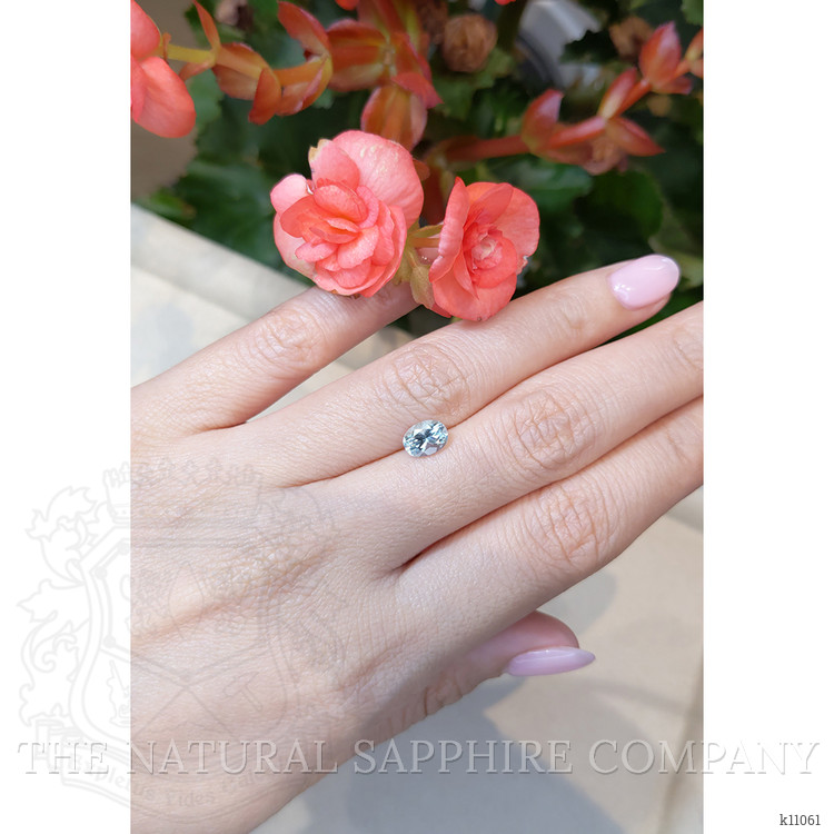 The transparent 0.80 carat oval shape greenish-blue aquamarine from The Natural Gemstone Company exemplifies the epitome of natural beauty and refined craftsmanship. This exquisite gemstone measures an impressive 7.17 x 5.37 x 3.98 mm, allowing its enchanting hues to command attention. The mixed brilliant cut of the stone is meticulously executed, designed to enhance the mesmerizing play of light across its surface. This particular faceting style harmoniously combines a traditional oval silhouette with a well-engineered structure, resulting in optimum brilliance and fire. Each facet has been crafted to interact perfectly with the ambient light, unveiling a seamless blend of artistry and geometry that distinguishes this gem as a remarkable treasure.