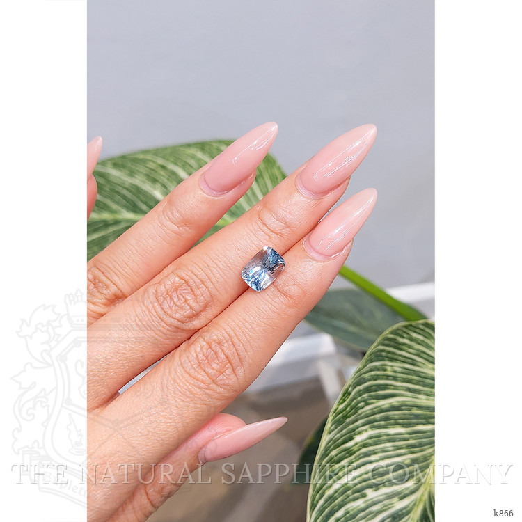 At a resplendent 2.84 carats, this cushion-shaped marvel exudes a luxurious aura with dimensions of 10.17 x 7.41 x 6.32 mm. Its mixed brilliant cut channels light in a harmonious symphony, unleashing a cascade of sparkles that dances across the gemstone's flawless surface. Each facet is expertly polished to perfection, reflecting an impeccable luster that meets the highest standards of elegance. As unblemished as a winter morning, the stone's very slightly included clarity confirms its authenticity while adding a touch of enigmatic character. The aquamarine's light color intensity conjures an image of tranquil waters kissed by moonlight, evoking a sense of serenity and romantic sophistication.