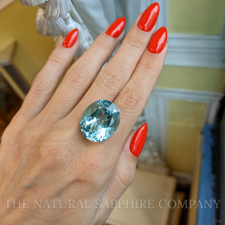 Hidden within the vibrant landscapes of Brazil lies a treasure of earthly origin, a testament to nature's artistry that we're proud to bring to you at The Natural Gemstone Company. The journey of our exquisite 27.68-carat aquamarine begins deep within the heart of the earth. Over millennia, geological forces and elemental whispers have shaped this remarkable greenish-blue stone, bestowing upon it a color and clarity that echo the majesty of the Brazilian landscapes from which it hails. Measuring an impressive 21.92 x 18.48 x 12.60 mm, its oval shape glistens with a mixed brilliant cut. This cut, known for maximizing the stone's natural brilliance, reflects not only a craftsman's skill but a lineage of tradition and expertise that has been honed over generations. With a clarity grade revered as eye clean and medium-light color intensity, this aquamarine captures the essence of tranquility and elegance.