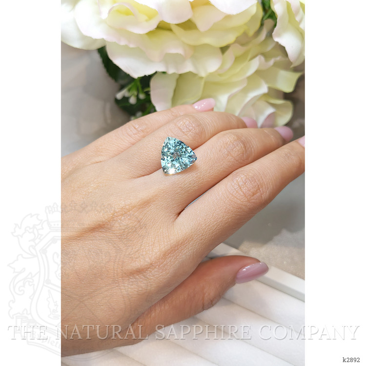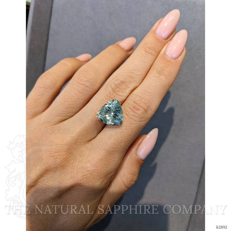 The unique trillion cut of this aquamarine enhances its allure, setting it ahead of other gemstones found on the market. The excellent polish further underscores the peerless quality of the gemstone, ensuring that every facet catches the light impeccably. Its light color intensity, a gentle greenish blue, complements the modern style while maintaining a timeless appeal. The subtle color shift is akin to the delicate hues of a clear ocean, offering a tranquillizing glimpse into the depths of natural beauty. This aquamarine, sourced from the famed mines of Brazil, is not simply a gemstone; it is a piece of nature's treasure, redefined by artisans at The Natural Gemstone Company to meet exemplary standards of quality and design.