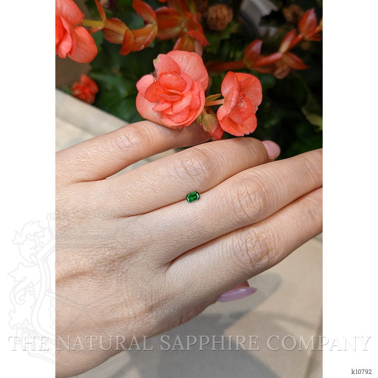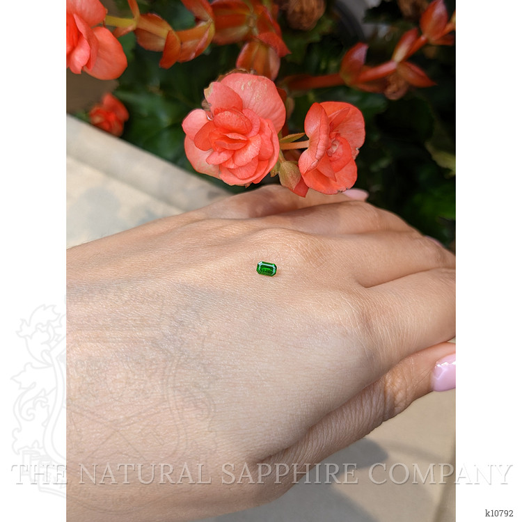 Discover an exquisite treasure revealed by nature itself, a truly rare gem. At The Natural Gemstone Company, we present to you an extraordinary 0.25-carat emerald-cut green chrome tourmaline. This captivating piece, sourced directly from the lush terrains of Mozambique, boasts dimensions of 4.28 x 2.90 x 2.21 mm. Its alluring emerald cut enhances the gem's inherent brilliance, offering a unique glimpse into the age-old artistry of the earth's rich terrains. When compared to lab-grown counterparts, natural stones like this vivid chrome tourmaline hold a remarkable allure. Each gem is a distinct and unparalleled creation of Mother Nature, created over millions of years. They bear within them the whispers of history and the timeless craftsmanship of the natural world.