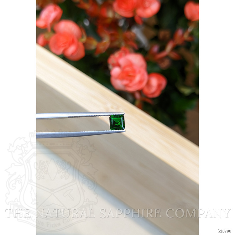 In the heart of the world, where whispers of emerald forests meet azure skies, lies a treasure waiting to be discovered. The Natural Gemstone Company presents to you a gemstone that is not just a piece of Earth, but a fragment of a dream held timeless. Here is a creation of elegance, imbued with the splendor of nature's own artistry—a 0.77 carat asscher-cut green chrome tourmaline that promises to sing a symphony of color and light.