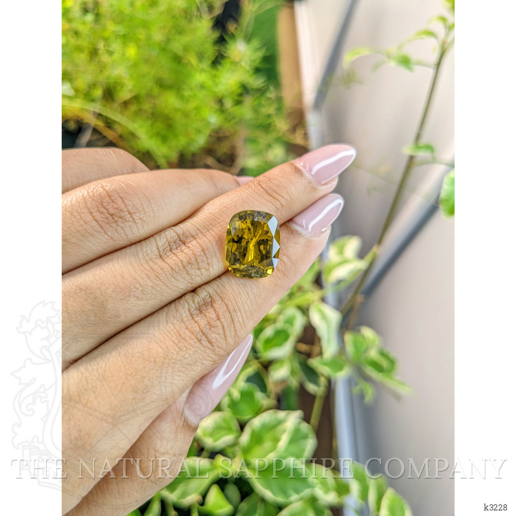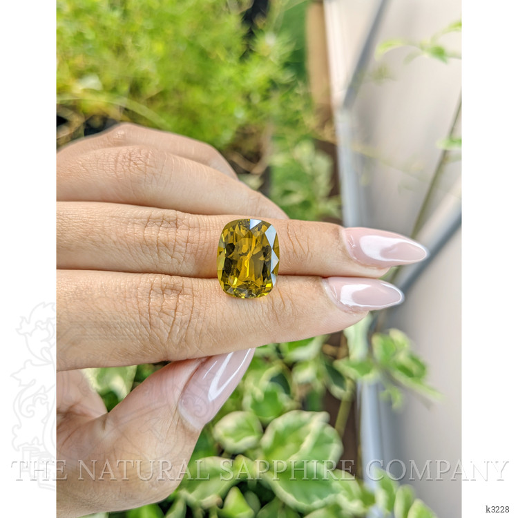 In the serene and verdant hills of Ceylon, nestled between lush tea plantations and the whispers of ancient legends, lies the origin of a gemstone as captivating and enigmatic as the island itself. Our prized chrysoberyl, a breathtaking 12.30 carat gemstone in a cushion shape, tells a tale woven in threads of verdant greens and mysterious browns, capturing the landscapes of its birthplace. At The Natural Gemstone Company, we are honored to present this exquisite stone that has been cradled by the earth with the utmost care and artistry.