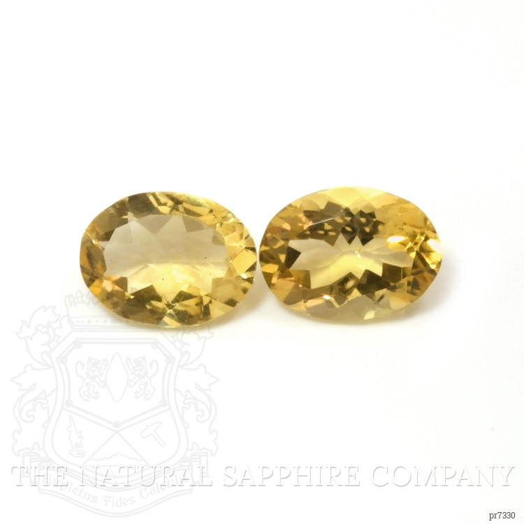 The beautiful transparent pair of citrines are 7.74 carats and 6.25 carats respectively. They are oval shape yellow citrines with the dimensions of 15.85 x 11.63 x 7.86 mm and 15.42 x 11.72 x 6.30 mm. Both citrines are masterfully cut in a mixed brilliant cut, showcasing a display of brilliance and fire that reflects the master craftsmanship involved. With a clarity grade of very slightly included, which has been evaluated at eye level, these citrines offer a pristine visual appeal with just minor inclusions that do not distract the eye. The medium color intensity further enhances their allure, providing a warm yet vibrant yellow hue that is both captivating and elegant. The excellent polish on these stones ensures a smooth and reflective surface that maximizes their dazzling appearance.