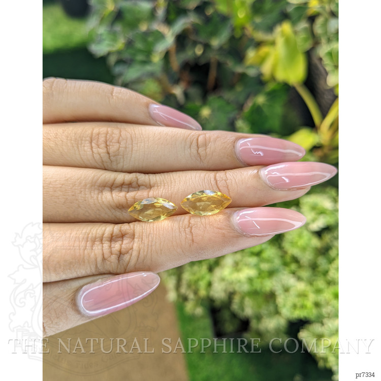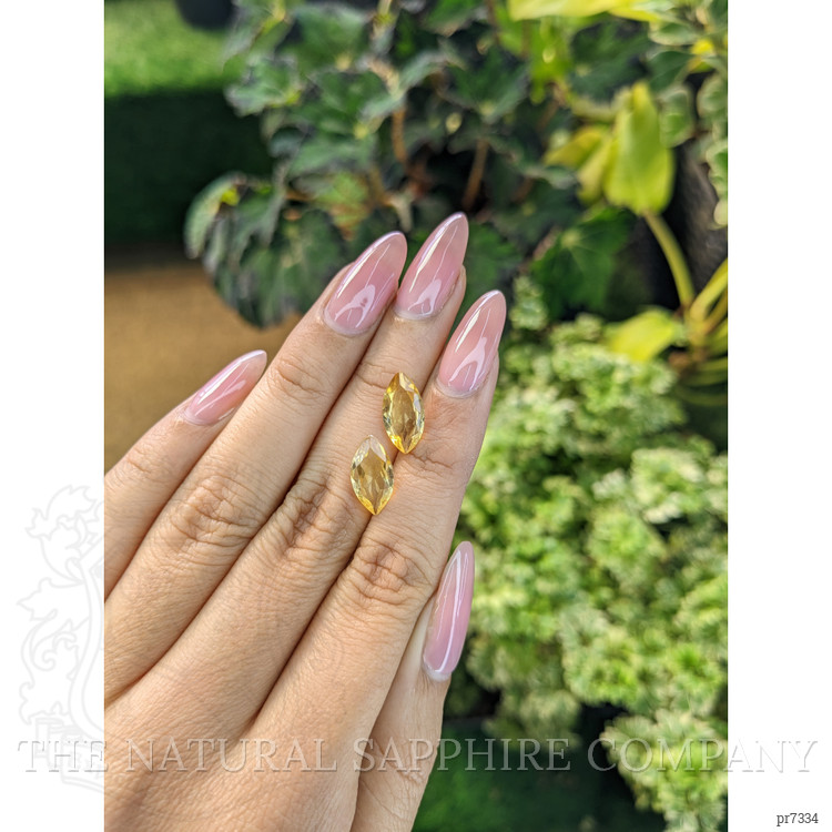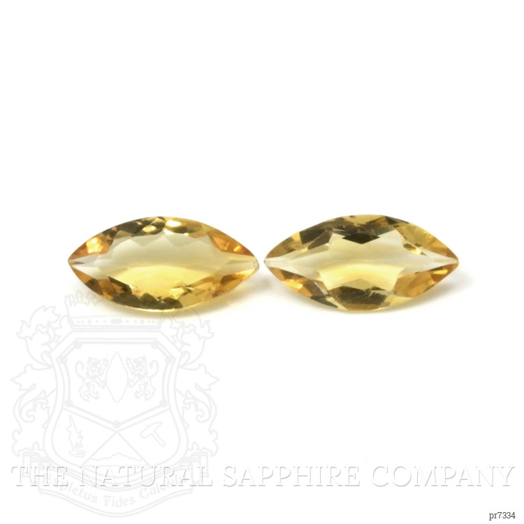 This exceptional pair of citrines, sourced responsibly from the renowned gem mines of Brazil, exemplifies the highest standards of social responsibility in gemstone mining. With a transparent brilliance, the stones are notable for their clarity, graded as very slightly included, ensuring only minor inclusions are visible upon close scrutiny. Weighing in at 2.09 and 1.94 carats respectively, these citrines present a marquise shape that enhances their natural allure and elegance.