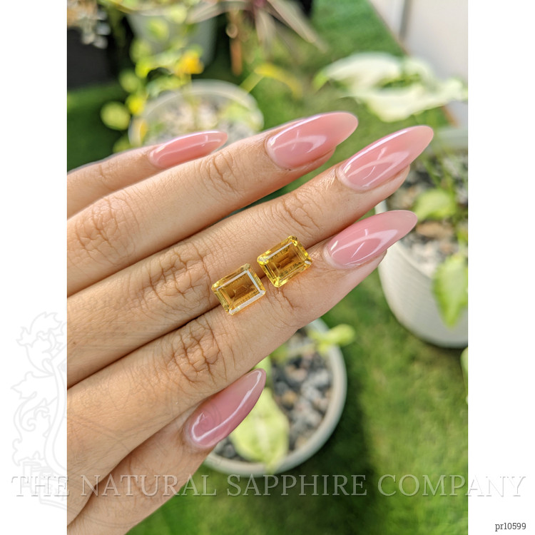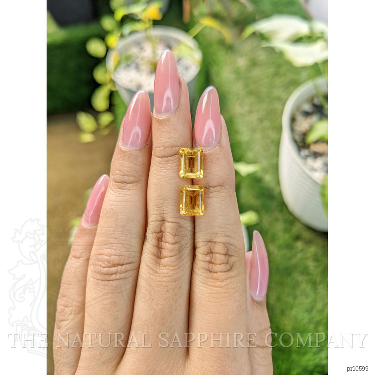 Citrines have been revered throughout history, adorning royalty and enhancing the allure of classic jewelry designs. This matched pair, with an excellent polish and an eye-clean clarity grade, is reminiscent of the age-old traditions where gemstones were not just ornaments but the essence of power and vitality. The timeless nature of the emerald cut, a design with roots tracing back to the boldness and precision of ancient artisanship, makes these citrines versatile in a multitude of jewelry settings.