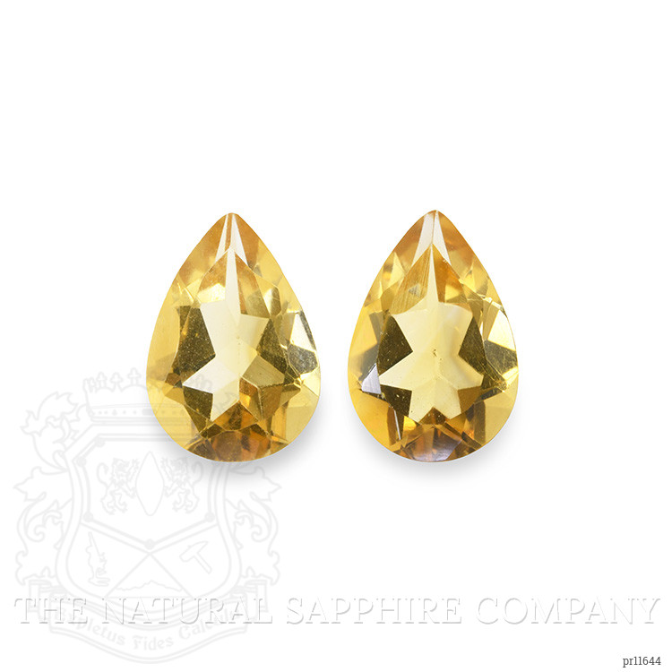 The value of these citrines lies in their exceptional clarity and vibrant color. Graded as very very slightly included, these stones possess high clarity when examined at eye level, allowing for an unhindered play of light within the pear-shaped facades. Their medium intense color showcases a rich, warm yellow that exudes elegance, further emphasized by excellent polish which adds a refined touch to any piece of jewelry they adorn. Heat treatment, a common and widely accepted enhancement, enhances their natural beauty without compromising the integrity of the stones, ensuring that their allure remains unmatched.