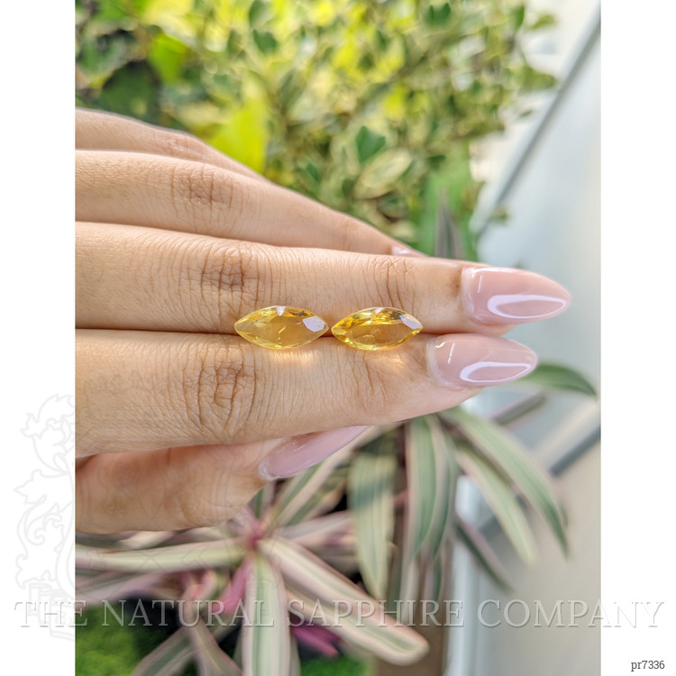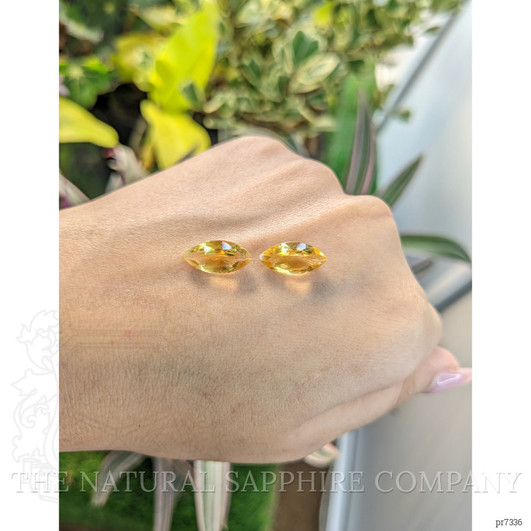 Looking for a truly captivating gemstone? Discover the brilliance and allure of the gemstone that will leave you enchanted. Introducing the exquisite transparent pair of citrines that promise to transform any jewelry piece into a statement of elegance and sophistication. With carat weights of 2.32 and 2.44, these marquise-shaped yellow citrines are a marvel of nature. Their dimensions, 14.05 x 7.05 x 4.51 mm and 13.86 x 7.09 x 4.57 mm, are meticulously crafted to perfection with a mixed brilliant cut that enhances their natural beauty. The eye-clean clarity ensures there are no visible inclusions to distract from their mesmerizing appeal, and the medium color intensity offers a radiant yellow hue that is both vibrant and sophisticated.