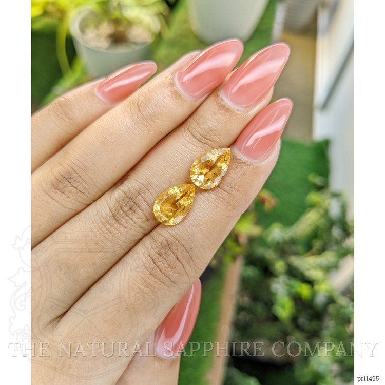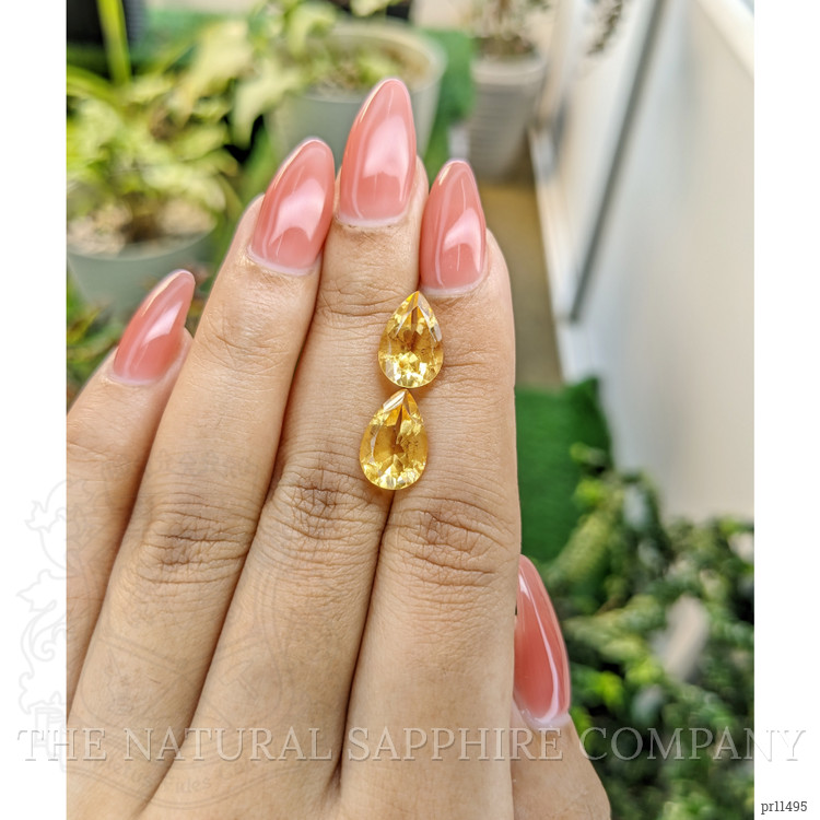 When it comes to choosing gemstones for your jewelry designs, the exquisite pair of citrines offered by The Natural Gemstone Company stands out as a remarkable choice that promises both elegance and versatility. These beautiful transparent citrines each measure 2.77 carats and 2.53 carats respectively. Not only are they breathtaking in their pear-shaped brilliance, but they also possess dimensions of 12.21 x 8.04 x 5.40 mm and 12.04 x 7.94 x 5.50 mm. What sets them apart is their mixed brilliant cut, which reflects light in a dazzling dance of medium intense yellow color, maintaining a standard of excellence that is eye clean even at the most demanding visual inspection. Enhanced through refined heat treatment, these citrines originate from Brazil, a locale celebrated for producing gemstones of superb quality.