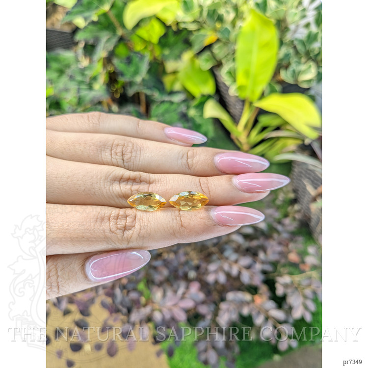 Introducing an exquisite pair of citrine gemstones that capture the essence of unparalleled elegance and sophistication. With impressive carats of 2.64 and 2.70 respectively, these transparent treasures are designed to enchant and captivate. Their marquise shape, measuring exactly 14.19 x 7.00 x 4.78 mm and 14.29 x 7.10 x 4.60 mm, combined with a mixed brilliant cut, provides a dazzling sparkle that is sure to turn heads. Demonstrating a commitment to quality, these citrines boast a clarity grade of very slightly included, as evaluated at eye level, affirming their pristine condition.