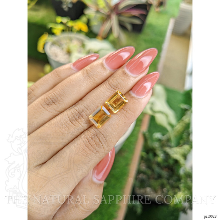 Perfectly crafted with dimensions of 9.94 x 7.98 x 4.66 mm and 9.98 x 8.00 x 4.91 mm, these citrines offer endless possibilities. Whether you envision them on a delicate necklace or as the centerpiece of sophisticated earrings, their versatility shines through, bringing out the best in both modern and classic designs. The emerald cut enhances their natural allure, making them a mesmerizing choice for any jewelry creation. With their eye-clean clarity and medium color intensity, they promise to add an unparalleled sparkle to your collection.