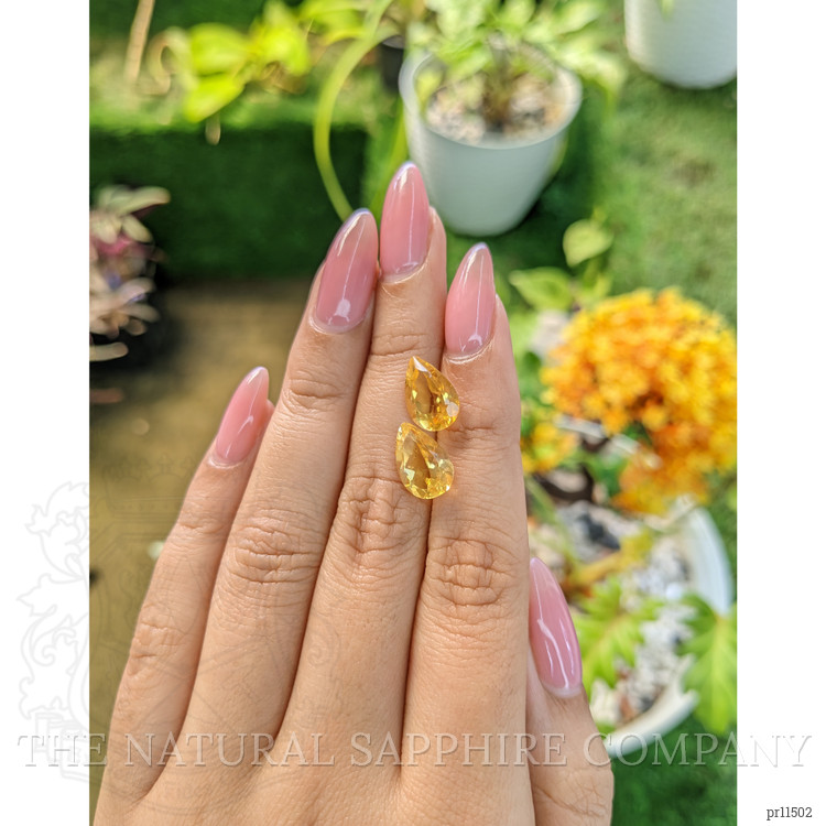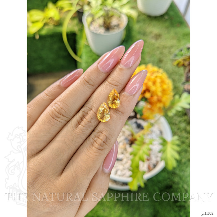 Introducing an exquisite pair of citrine gemstones, brought to you by The Natural Gemstone Company, where expert craftsmanship meets natural wonder. This stunning pair, boasting weights of 2.68 and 2.80 carats, epitomizes the allure of genuine Brazilian citrines. Each gemstone showcases the elegant pear shape, a classic yet rare cut that enhances their inherent brilliance. With dimensions of 11.87 x 7.85 x 5.70 mm and 12.05 x 8.12 x 5.65 mm, these citrines are masterfully crafted with a mixed brilliant cut. This distinct cut maximizes the play of light within the gem, resulting in a luminous sparkle that captivates the eye.