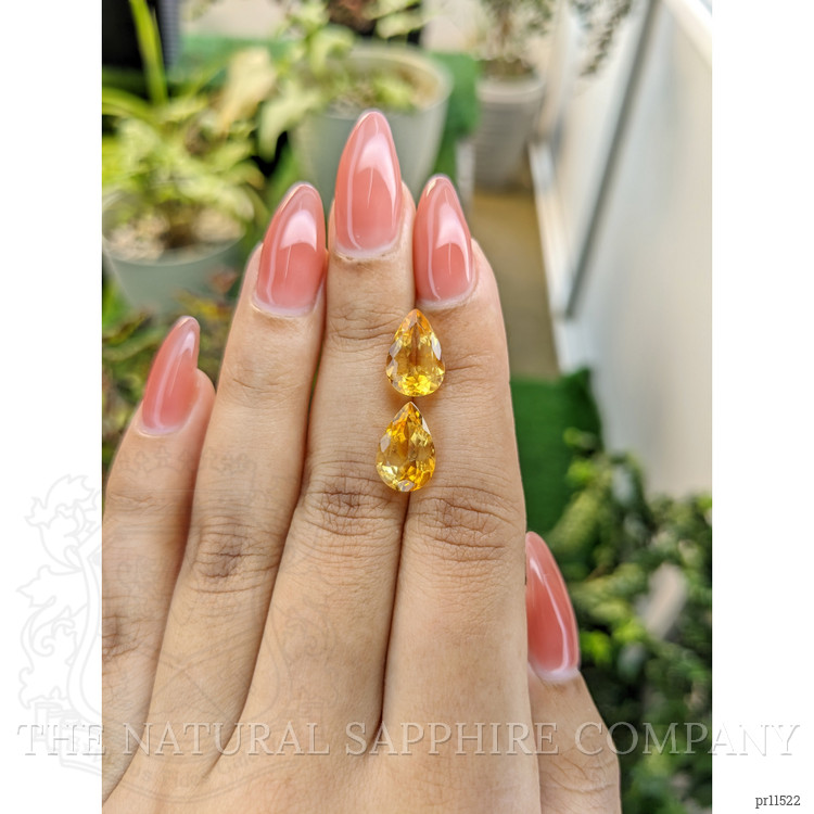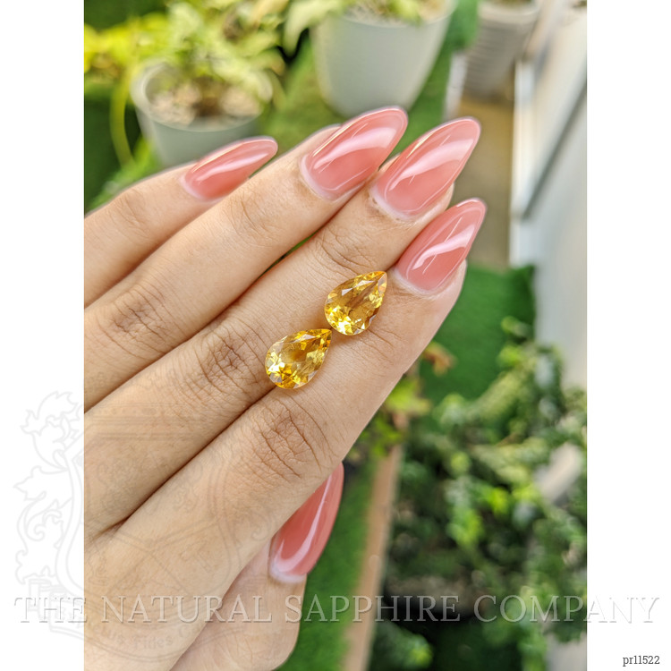 The pear-shaped design of these citrines embodies both traditional elegance and modern sophistication. With precision-cut dimensions of 12.03 x 8.05 x 5.68 mm and 12.11 x 7.99 x 5.87 mm, the stones have been crafted using a mixed brilliant cut. This artful technique highlights the gemstones' natural brilliance while maximizing their sparkling potential. The eye clean clarity grade ensures that each stone is devoid of visible inclusions at eye level, providing a pristine viewing experience that enhances their intrinsic charm and impeccable polish, which reflects our dedication to superior craftsmanship.