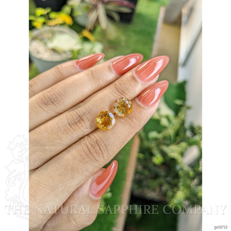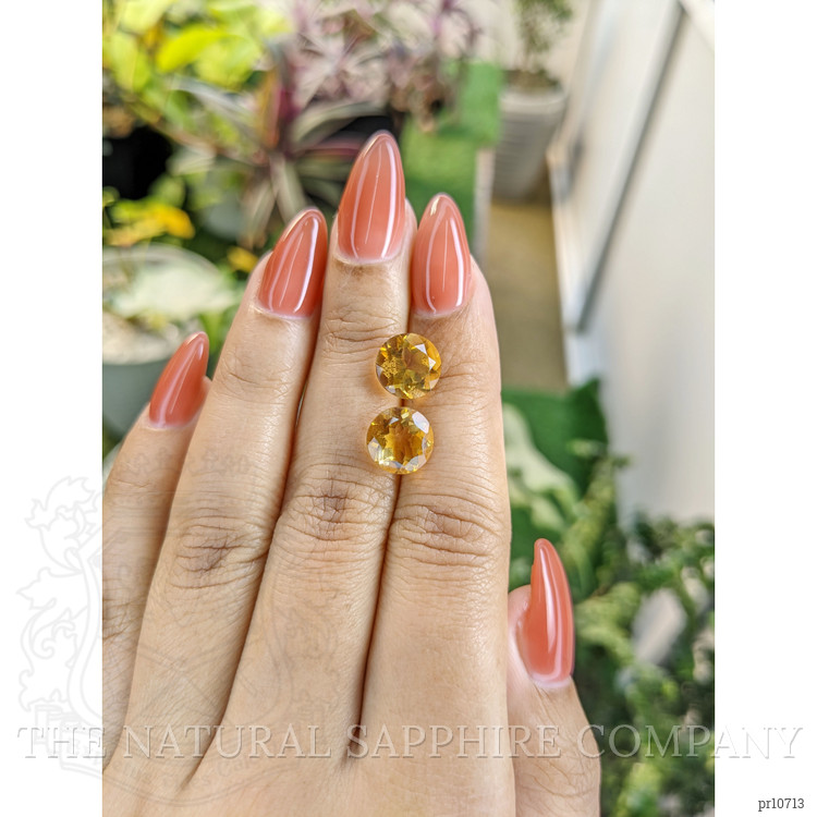 In the heart of Brazil's sunlit terrains, where the earth nurtured its vibrant offspring for millions of years, began the journey of these extraordinary citrines. Nestled purely among the rock formations, these citrines awaited discovery. Their golden hues shimmered subtly beneath layers of earth, a secret yet undiscovered, until meticulous mining and skilled hands brought their latent beauty to light. At The Natural Gemstone Company, we have the privilege of presenting to you these remarkable treasures of nature, consecrated by both time and geography. Each gemstone, measuring 2.77 and 2.88 carats, embodies warmth, with dimensions finely sculpted—9.28 x 9.26 x 5.96 mm and 9.21 x 9.22 x 6.45 mm respectively.
