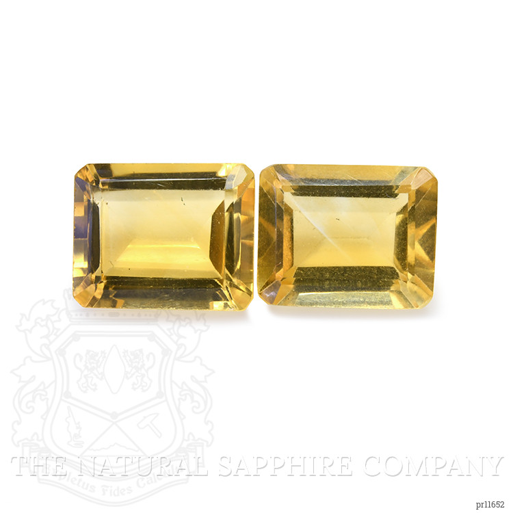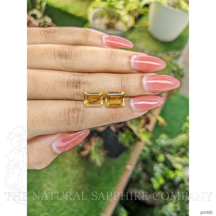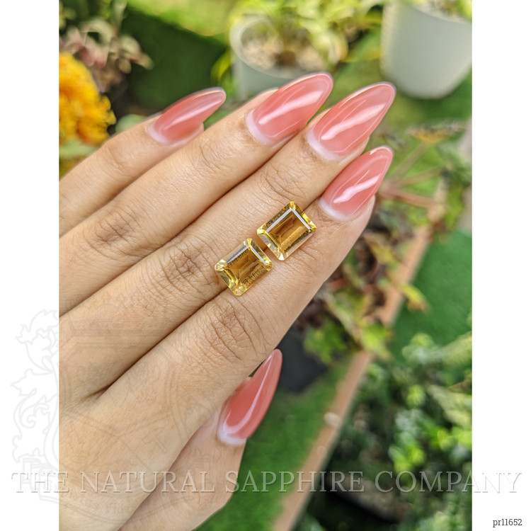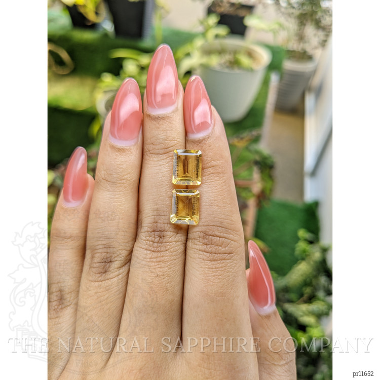The stones weigh 2.66 and 3.04 carats, respectively, and are masterfully cut into the classic emerald shape. With dimensions of 9.89 x 7.93 x 4.70 mm and 9.97 x 8.11 x 4.78 mm, they form a complementary duo that is perfect for sophisticated high-end designs. Each stone boasts a medium color intensity that exudes a warm, yellow hue, reminiscent of golden sunsets captured in a crystal moment. The eye-clean clarity grade ensures maximum brilliance, revealing the fire and sparkle that citrines are famed for.