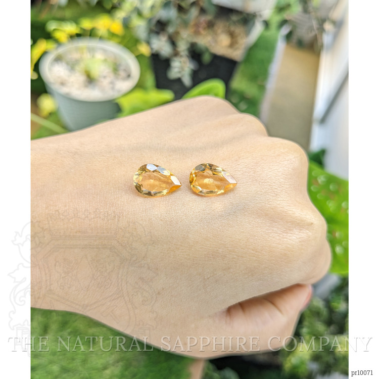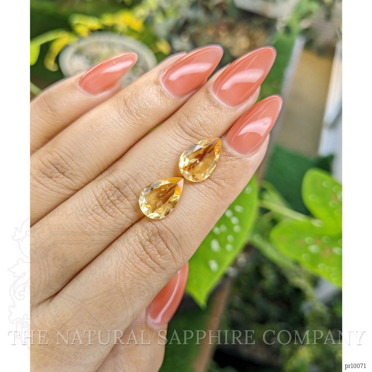 Once these citrines reach the master artisans, they undergo a remarkable metamorphosis. Their dimensions—13.18 x 8.81 x 4.80 mm for the larger gem and 13.16 x 8.84 x 4.66 mm for its companion—are meticulously considered to bring out their innate brilliance. The mixed brilliant cut is where the magic truly unfurls, capturing and reflecting light in a dazzling dance of luminescence. Each facet, polished to perfection, reveals the citrine's potency, crafting an exquisite light display that is both enchanting and refined. It’s a testament to both the splendor of nature and the meticulous skill of our craftspeople, upholding the legacy of The Natural Gemstone Company.