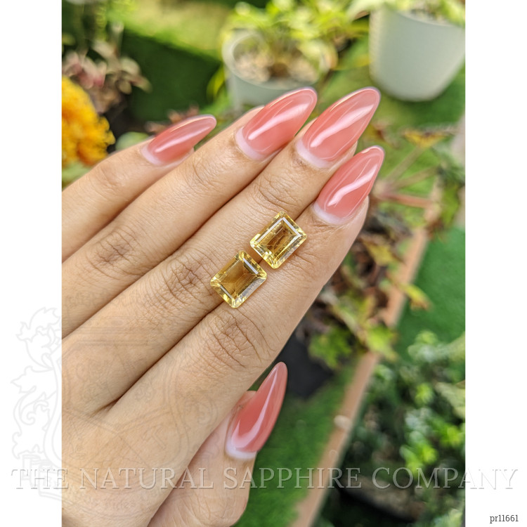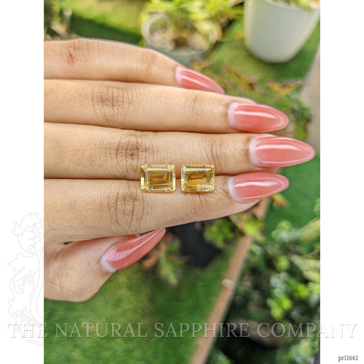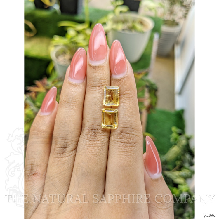 At The Natural Gemstone Company, we take pride in offering gemstones that truly stand out in a sea of imitations and mass-produced alternatives. Our extraordinary pair of citrines exemplifies the exceptional craftsmanship and attention to detail that set us apart. Weighing in at 3.11 carats and 3.01 carats, these transparent yellow citrines are meticulously cut into an emerald shape, a testament to the high level of technical precision required to achieve such perfection. With dimensions of 9.91 x 7.94 x 5.29 mm and 10.08 x 7.98 x 5.05 mm, these citrines are crafted to be not just beautiful, but matched with exacting accuracy, a quality not often found in most gemstones available on the market.