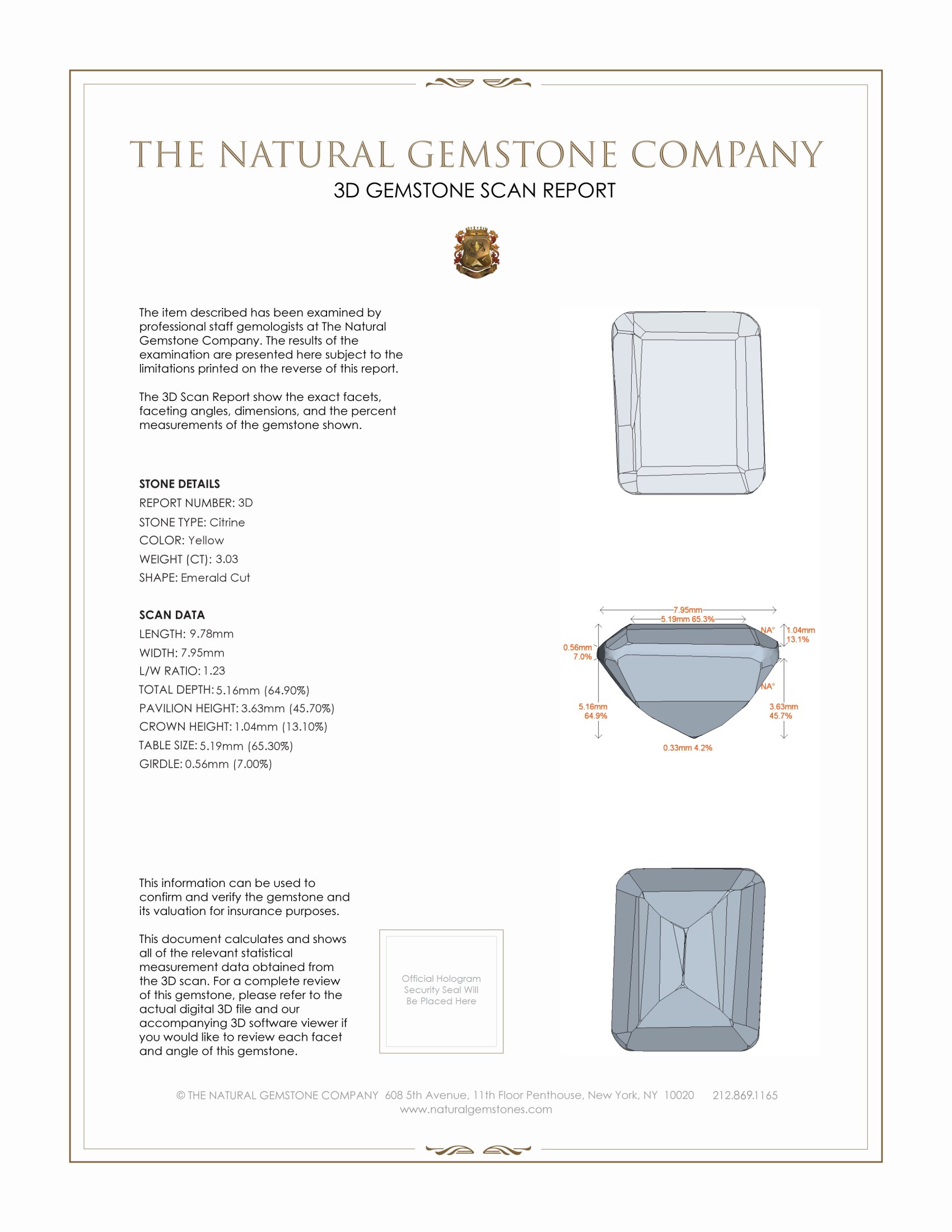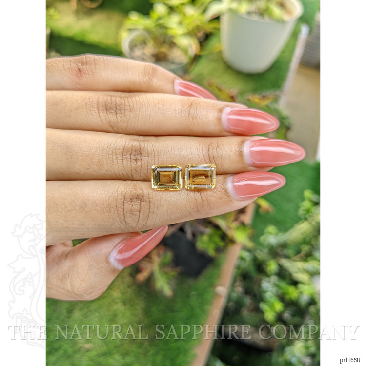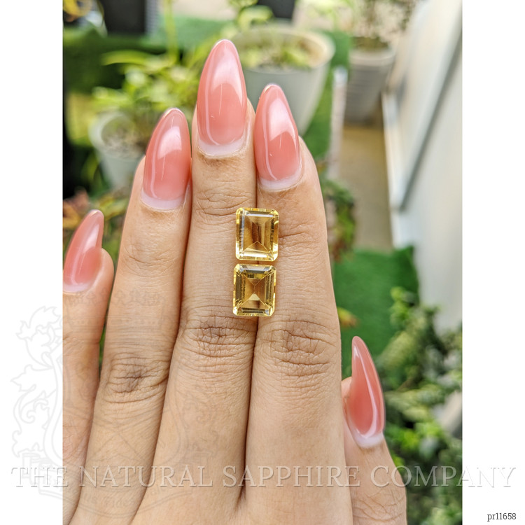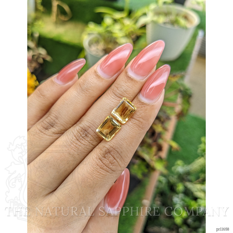 In the heart of Brazil's dazzling landscapes, under the watchful gaze of an unyielding sun, lay hidden treasures waiting to be unearthed. Among these treasures are our rare pair of luminous citrines, a symbol of warmth and vitality meeting the eternal elegance that The Natural Gemstone Company is renowned for. Each gem, one weighing 3.11 carats and the other 3.03 carats, speaks of a timeless journey from their sunny origins to the curated refinement soon to grace your most elegant moments. These emerald-cut masterpieces with dimensions of 9.73 x 7.96 x 5.42 mm and 9.78 x 7.95 x 5.16 mm are a divine expression of natural beauty, transformed through the skilled artistry into jewels of exceptional allure.