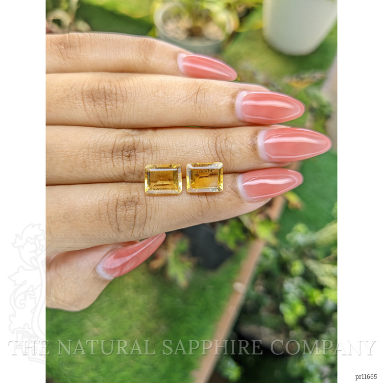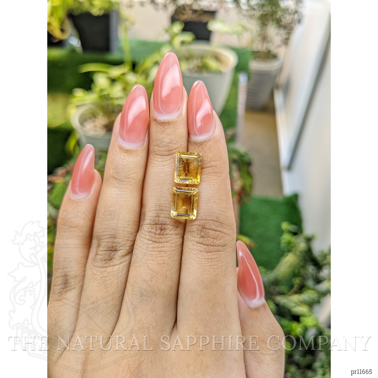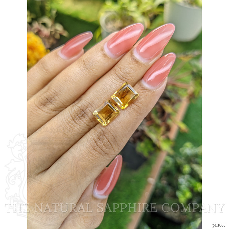 At The Natural Gemstone Company, we take pride in presenting our exquisite pair of emerald cut citrines, each renowned for its inherent elegance and vibrant allure. These matching gemstones, weighing 3.19 and 3.08 carats respectively, embody the subtle elegance that only a well-crafted pair can achieve. Each citrine boasts dimensions of 9.98 x 8.07 x 5.34 mm and 9.94 x 8.09 x 5.29 mm, meticulously cut to highlight the rich hues of these Brazilian wonders. The facets are polished to excellence, ensuring a lustrous appeal that captures and refracts light in a symphony of warm tones. The medium color intensity showcases a delightful yellow, striking a perfect balance between brightness and warmth, while the very very slightly included clarity grade ensures an eye-clean appearance, offering you a visual delight that speaks to both aesthetics and quality.