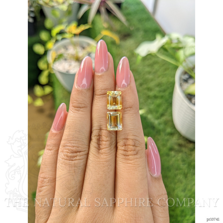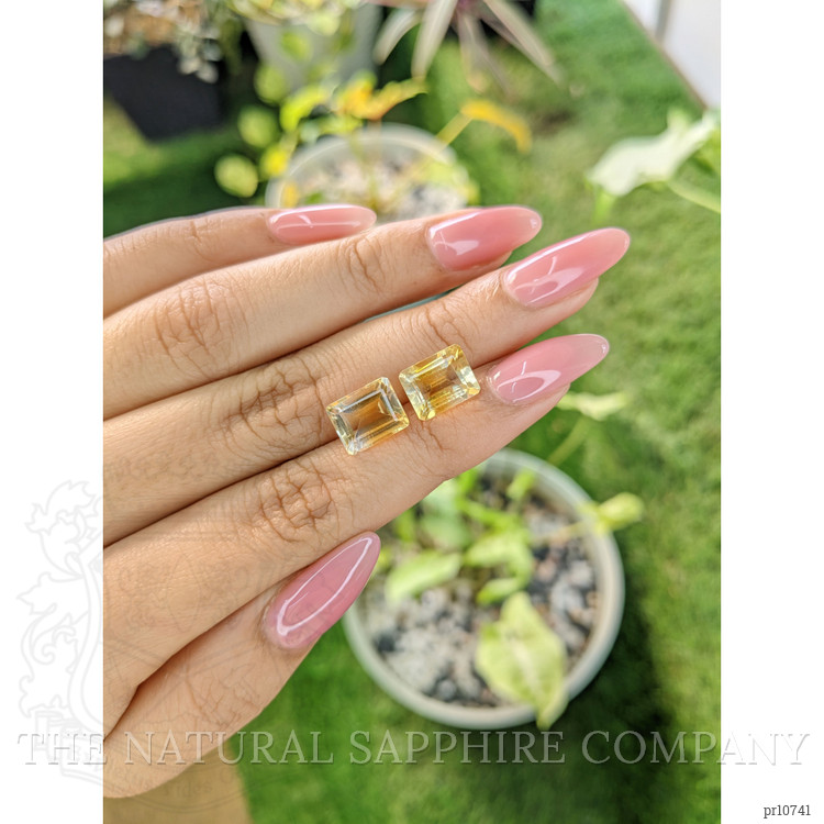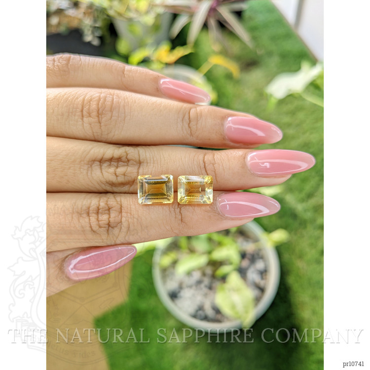 Introducing an exclusive offering from The Natural Gemstone Company, a truly extraordinary pair of citrines. This exquisite duo, crafted with precision and passion, consists of two stunning emerald-cut yellow citrines, weighing in at 3.05 and 3.26 carats respectively. They are treasures from the heart of Brazil, radiating warmth and capturing the sun's glow within their transparent allure. Their dazzling brilliance is accentuated by their flawless eye-clean clarity, very light color intensity, and an excellent polish, making them a magnificent sight to behold.