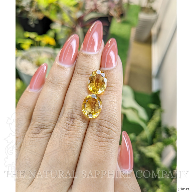 Indulge in the subtle luxury and exquisite beauty of our latest offering from The Natural Gemstone Company—a one-of-a-kind pair of citrine gemstones. Sourced from the rich, vibrant landscapes of Brazil, these yellow citrines weigh an impressive 3.75 and 3.50 carats. Crafted for those with a discerning eye for perfection, each gem is meticulously shaped in an elegant oval form, ensuring they catch the light with every movement. Their dimensions, precisely measured at 11.81 x 9.57 x 5.91 mm and 11.91 x 9.68 x 5.74 mm, enhance their allure. Mixed brilliant cut facets bring out the inner radiance, allowing them to sparkle with an enthralling blend of brilliance and fire.