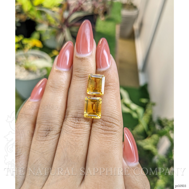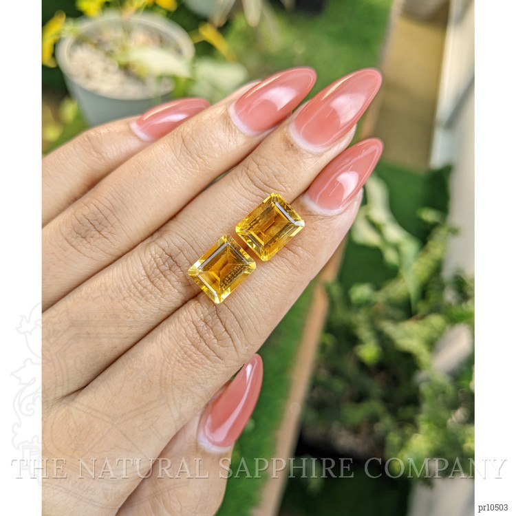 Step into a world where history and elegance intertwine with our exquisite pair of citrines at The Natural Gemstone Company. These citrines, sourced from the verdant landscapes of Brazil, echo the timeless beauty and captivating allure that gemstones have held throughout the ages. These gemstones, with precise dimensions of 11.06 x 8.97 x 6.32 mm and 11.04 x 8.91 x 5.75 mm, embody a legacy of creation, perfected through centuries of craftsmanship and tradition. Their emerald cut shape nods to classic elegance, highlighting the rich yellow hue that has been treasured across civilizations. Each gemstone, painstakingly cut and polished to achieve an excellent finish, showcases a medium intense color, carrying with it a delightful warmth reminiscent of golden sunsets and radiant energy.