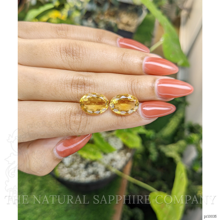 Introducing an exquisite pair of citrines from The Natural Gemstone Company, these stunning stones exhibit exceptional transparency and vibrant yellow hues. With a weight of 4.77 carats and 4.75 carats respectively, these complementary gemstones are designed to captivate. Their oval shape, accompanied by dimensions of 13.84 x 10.16 x 5.83 mm and 13.94 x 10.05 x 5.76 mm, ensures that they possess a balanced proportion that enhances their allure. The mixed brilliant cut is skillfully executed, maximizing their reflective qualities and ensuring a scintillating play of light from every angle. With an eye-clean clarity grade, you can admire these gemstones free from visible inclusions, showcasing the impeccable quality synonymous with their place of origin: Brazil, one of the most respected sources for citrines worldwide.