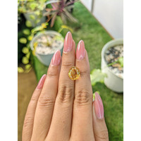 Subtle yet impactful, the medium color intensity of this citrine strikes the perfect balance. It whispers elegance, sophistication, and warmth in equal measure. The color evokes imagery of sun-drenched fields of marigolds and the golden glow of dusk, a constant reminder of the beauty that exists in the world when one follows the path of love. With an excellent polish, the citrine's finish is flawless and smooth to the touch. This polish not only enhances its luster but also ensures that it remains a visual masterpiece for generations to come, symbolic of a love story that never fades.
