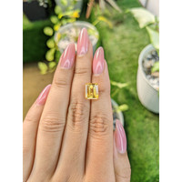 In the heart of Brazil, beneath a canopy of lush green foliage and vibrant flora, lies a hidden treasure waiting to be unearthed. Here, where the earth seems alive with color and vitality, resides a gem of nature's finest crafting: the yellow citrine. This stone begins its journey deeply nestled within the rocky folds of the Brazilian landscape. As the land shifts and evolves over centuries and winds carve their stories through time-hardened earth, these vibrant gems are awakened to the light of day, glimmering with a lustrous promise. Embracing the warm blush of Brazil's sunlit mornings, our exquisite 3.86 carat emerald cut shape yellow citrine begins its life as a silent yet resplendent witness to nature's brilliance.