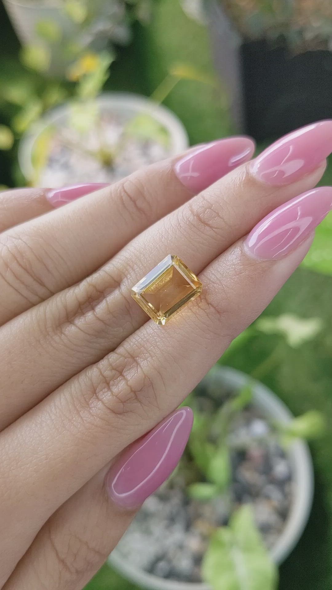The 4.01 carat emerald cut yellow citrine offered by The Natural Gemstone Company is a remarkable specimen, showcasing both the clarity and craftsmanship evident in stones of this caliber. Boasting dimensions of 10.79 x 8.80 x 5.67 mm, this piece presents itself with the subtle elegance that is emblematic of the emerald cut, a style highly regarded for its long parallel facets, which enhance both brilliance and depth. The intricacies of the emerald cut allow for an expansive table, emphasizing the stone’s clarity and giving it a mirror-like window to peer into its depths. This citrine features a clarity grade classified as very slightly included when evaluated at eye level, ensuring only minor inclusions that are typical within a gem of its nature, maintaining a high level of transparency and allure.