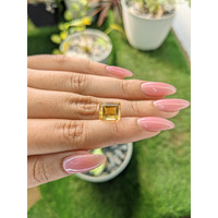 Every angle of this gem is a testament to its superior craftsmanship boasting an excellent polish that reflects light with a brilliance seldom seen. The intense color intensity of this yellow citrine beholds a luxuriant depth reminiscent of a perfectly aged vintage bringing warmth that elevates any ensemble. It carries an enigmatic charm capable of transforming ordinary moments into extraordinary narratives countless tales crafted from the intersection of light and angles unique to an emerald cut. It has the singular ability to drape its wearer in unmatched splendor truly making it an inherent touchstone of beauty and elegance.