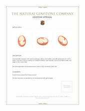 In the realm of dreams where reality sways like the gentle dance of silk in the breeze, there exists a rare gem, a spectacular delight born from the heart of the sea. This 3.09 carat masterpiece, an opaque oval shaped salmon and white coral, beckons with an elegant allure, capturing the soul in an intricate tapestry of romance and wonder. This exquisite piece, carved with care and skill, bears the fingerprint of nature's artistry, whispering tales of ancient oceans and mysterious depths.
