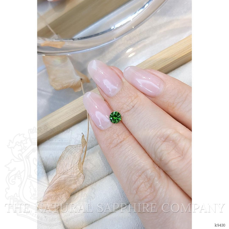 This particular gem, at its inception, began as part of a geological tapestry buried beneath layers of rock and soil, waiting to reveal its brilliance. As skilled miners delicately extracted this precious mineral, their expertise unearthed a stone renowned for its chastely radiant green hue. Measuring a delicate 5.04 millimeters by 5.04 millimeters, with a depth of 3.02 millimeters, this demantoid garnet is a triumph of nature's craft. Its journey from raw form to a polished masterpiece embodies the intrinsic connection between the forces of nature and human ingenuity.