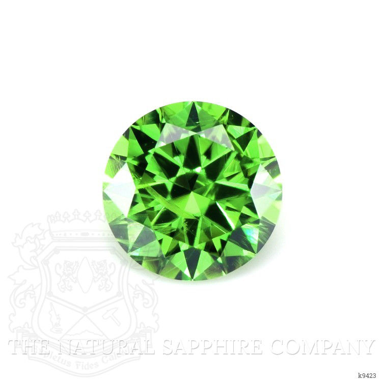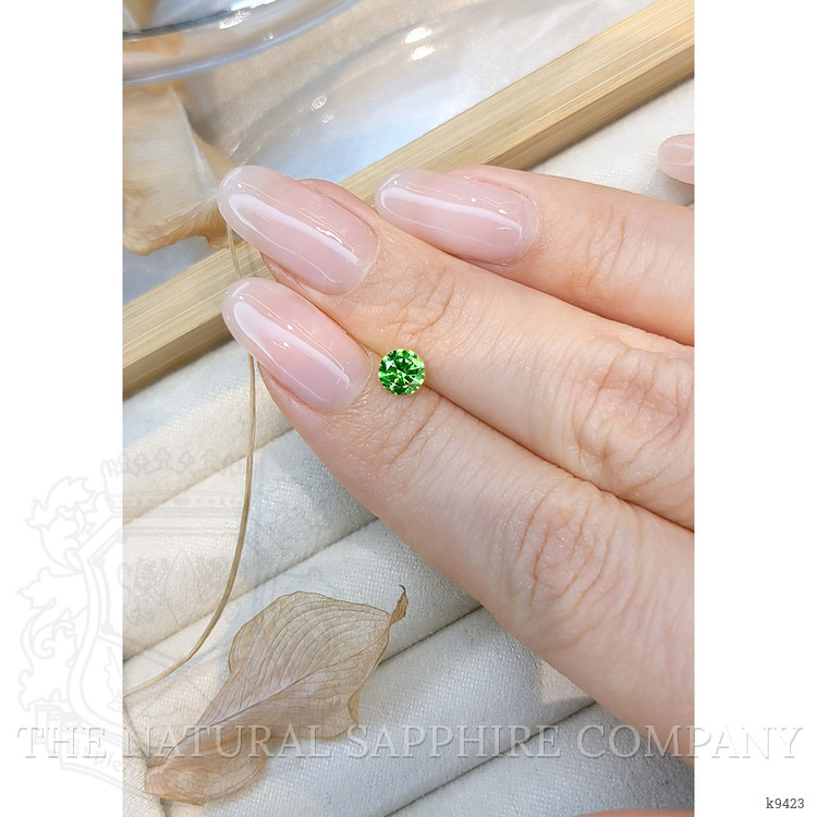 Experience the exceptional beauty and unparalleled durability of our exquisite transparent 0.59 carat round shape green demantoid garnet, brought to you by The Natural Gemstone Company. If you've been searching for the perfect gemstone that combines both elegance and resilience, your search ends here. With dimensions of 5.11 x 5.12 x 3.18 mm, this remarkable gem boasts a mixed brilliant cut that enhances its natural radiance, making it a stunning focal point for any piece of jewelry. The demantoid garnet's intense color intensity and excellent polish promise to captivate any admirer with their vibrant sparkle, creating an unforgettable impact whether worn during the day or at evening events.