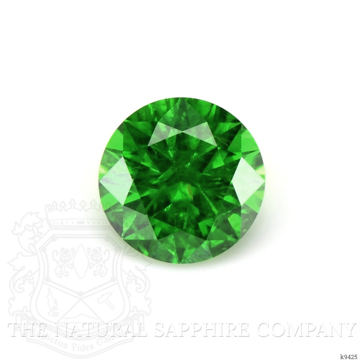 Amidst the whispers of eternity and the timeless dance of nature's colossal beauty, there lies a gem born from the whispers of earthly splendor. Envision the rare allure of the 0.63 carat round-shaped green demantoid garnet, a treasure that captures both heart and soul with its bewitching presence. Its allure is unveiled in each delicate facet, a harmonious symphony of nature’s colors rendered in a vivid intensity that defies the passage of time. The radiant heart of this stone, hidden within its 5.10 x 5.08 x 3.32 mm form, pulses with a life of its own. It transforms every fleeting moment into an eternity of passion and wonder. All who gaze upon its vivid green embrace will find themselves enraptured by its transcendent beauty, the magic of its origin weaving a spell as ancient as Russia’s storied terrains.